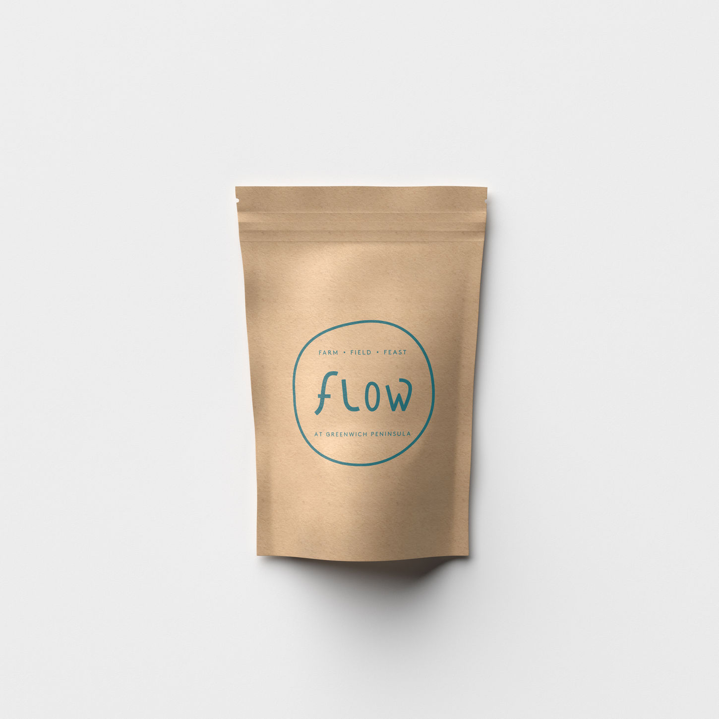The logo design for FLOW is inspired by the shape of the River Thames, reflecting its riverside location. The overall shape of the logo represents Greenwich Peninsula, with the letters ‘o’ and ‘w’ crafted in an organic, fluid style that complements the theme of flow and water movement.